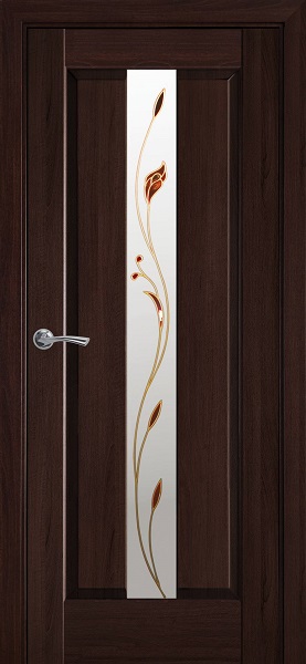 Межкомнатная дверь Премьера сочетает в себе неоклассический стиль и постмодерн. Полотно разделено на три части продолговатыми прямоугольниками. Две крайние части – одинаковые, расположенные на высшем уровне относительно средней части. Она как раз и представляет собой украшение полотна. Дверь Премьера может быть остекленной в этой части матовым или черным стеклом с рисунком или без. Есть модели с гравировкой и прозрачным контуром на стекле.