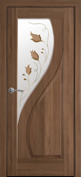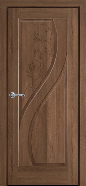 S-образный рисунок межкомнатной двери Прима популярен в интерьере и часто применяется для декорирования мебели. Это значит, что ее легко гармонично подобрать под идентичные волнистые орнаменты, подчеркивая задумку дизайнера. Змееобразная линия делит полотно Прима на равные части, верхняя может быть, как глухой, так и остекленной. Дополняет дверь изображения на гравировке или на стекле на растительную тематику.