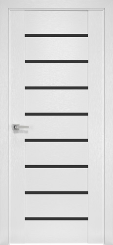 Межкомнатные двери коллекции Orni-X. Модель Парма доступна в покрытии Silk в цвете Х-Белый с черным стеклом.