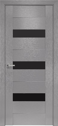 Межкомнатные двери коллекции Orni-X. Модель Вена доступна в покрытии Silk в цвете Х-Хром c черным стеклом.