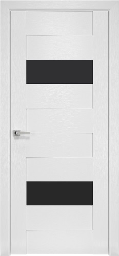 Межкомнатные двери коллекции Orni-X. Модель Женева доступна в покрытии Silk в цвете Х-Белый с чёрним стеклом.