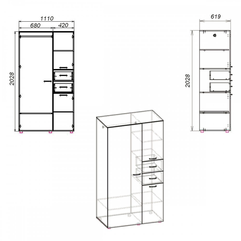 Размер упаковки: ШКАФ-19 ч.1 — 2000х685х55 мм.