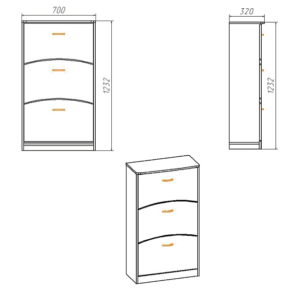 Ширина: 700 мм.Высота: 1232 мм.Глубина: 320 мм.