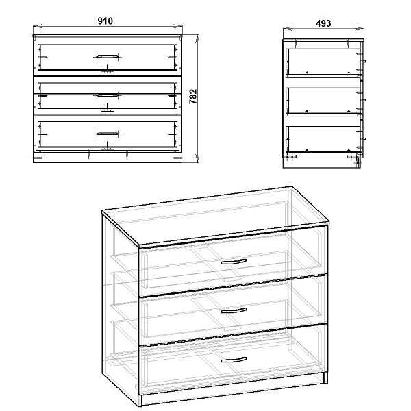 Размер упаковки: КОМОД 3Б — 917х495х160 мм.