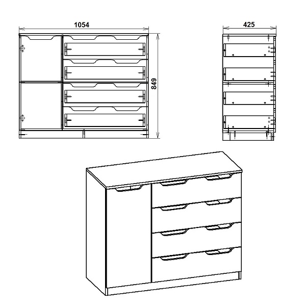 Размер упаковки: КОМОД-4+1М — 1056х425х160 мм.