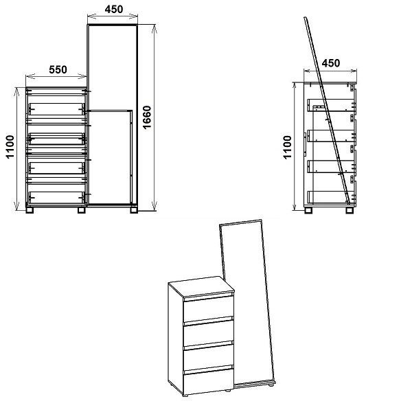 Размер упаковки: КОМОД-Зеркало — 1656x450x105 мм.