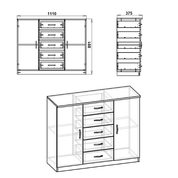 Размер упаковки: КОМОД-5+2 — 1120х410х180 мм.