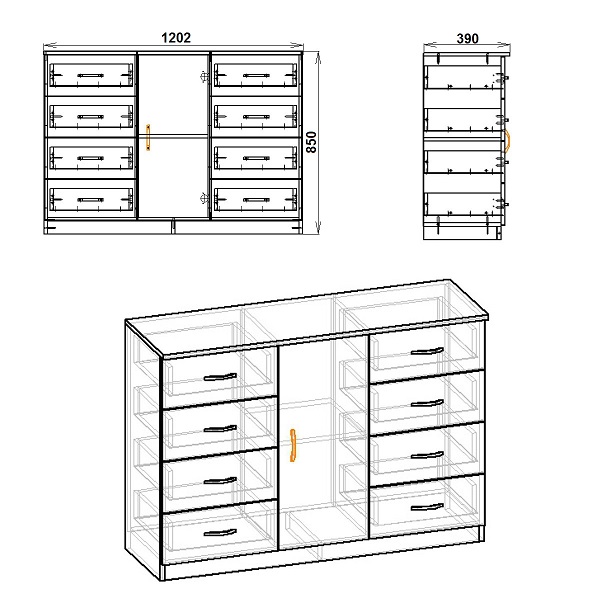 Размер упаковки: КОМОД-8+1 — 1205х430х180 мм.