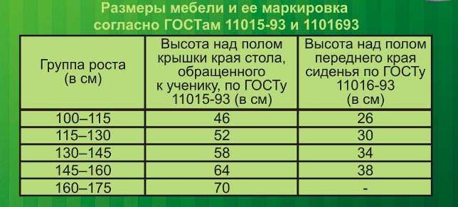 Высота парты и стула регилируется по мере роста ребенка до 1 м 60 см. (см.табличку)